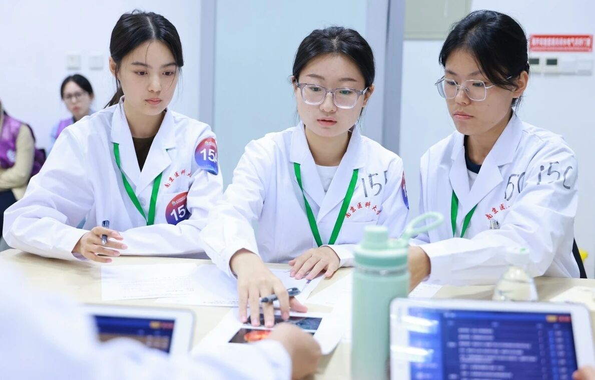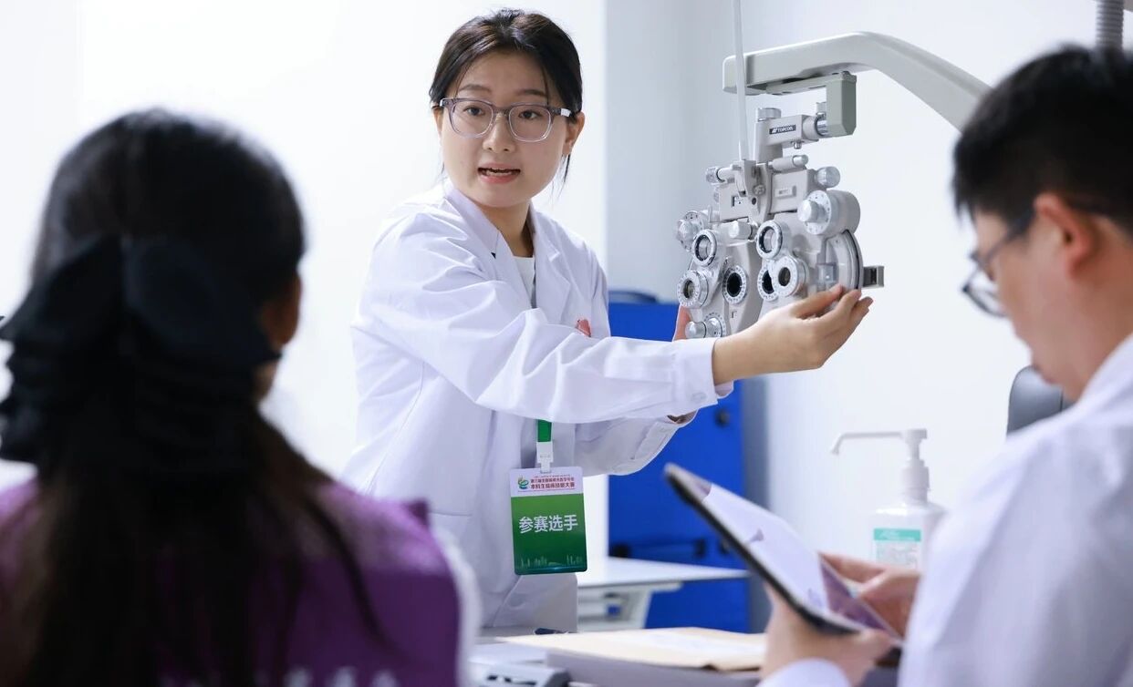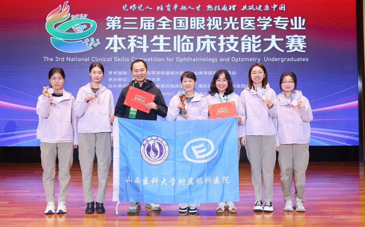 2025年10月18日,由国家教育部眼视光医学教学指导分委员会主办的第三届“全国眼视光医学专业本科生临床技能大赛”在南京医科大学举行,来自全国21所院校眼视光医学专业的近百位本科生精英队伍齐聚一堂,展开了一场激烈而精彩的技能比拼。 我院队伍由张立华主任、张朝霞老师,冯恬枫老师为指导老师,来自2021级眼视光医学专业杜小翠、李嘉、邢敏钰、白野四名同学在科教科杜勃老师的带领下参加门诊病史采集和眼科初始检查、外眼和眼前节检查、眼底检查、检影验光、主觉验光及老视检查、眼视光综合病例分析等项目的比赛。