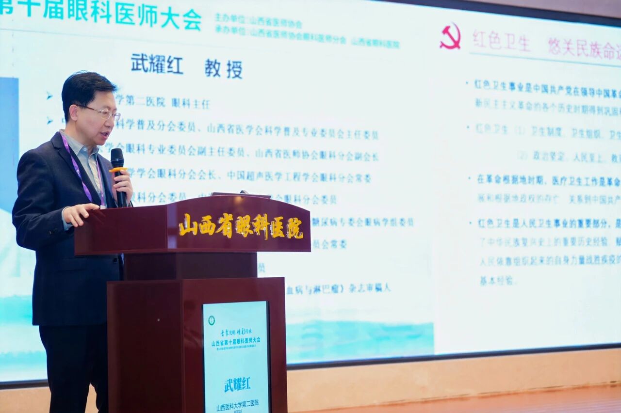 副会长武耀红教授做总结发言。本次盛会吸引了超过 452 名眼科同道参会,盛况空前。会议期间,国内外的46位知名专家在7场新技术版块和9个专题会上奉献了极高水平的专题讲座,分享了宝贵的经验与独到的见解,会场内思想碰撞,智慧激荡,学术氛围浓厚。大会共收到论文109篇,数量与质量均较往届有显著提升。同时,涌现出一批形式新颖、内容扎实的科普作品。他指出,学术交流是推动学科建设的重要动力,山西眼科将持续激活创新源泉、强化人才队伍建设,为眼健康事业高质量发展贡献新力量。