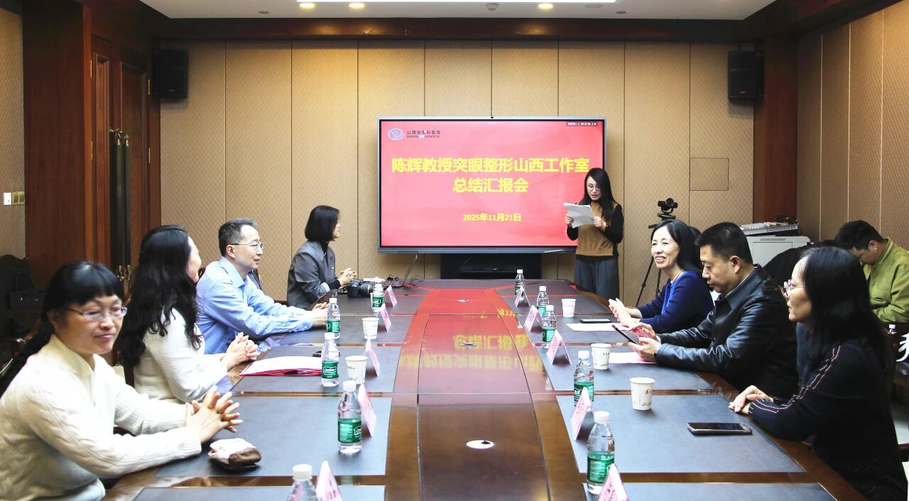 11月21日下午,“陈辉教授突眼整形山西工作室”总结汇报会在山西省眼科医院会议室成功举行。上海市第一人民医院眼科专家陈辉教授,山西省眼科医院党委书记李俊红教授,党委副书记、院长周国宏教授,整形科主任任晓霞教授及工作室团队成员,以及科教科、财务科、放射科、麻醉科等相关科室负责人参会。
