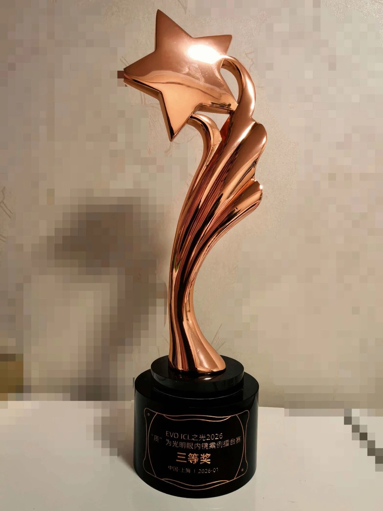 2026年1月8日至10日,2026 “海上之光” 眼视光学与视觉科学学术会议、2026视觉科学技术及设备展览会、第十四届 “关爱近视・微笑论坛”在复旦大学附属眼耳鼻喉科医院盛大启幕。作为覆盖全生命周期眼健康的眼视光年度盛会,本次大会汇聚国内外领域顶尖专家,同期举办的“EVO ICL之光 2026‘质’为光明眼内镜案例擂台赛”更吸引多支全国眼科精英战队同台竞技。在这场高水平的学术竞技中,我院白内障科刘文洁副主任医师凭借扎实的临床功底和深入的思考,其参赛案例《浅水行舟向深处——较小前节结构患者ICL型号选择与长期安全》在全国性评选中脱颖而出,最终在“EVO ICL之光2026‘质’为光明眼内镜案例擂台赛”中荣获三等奖。