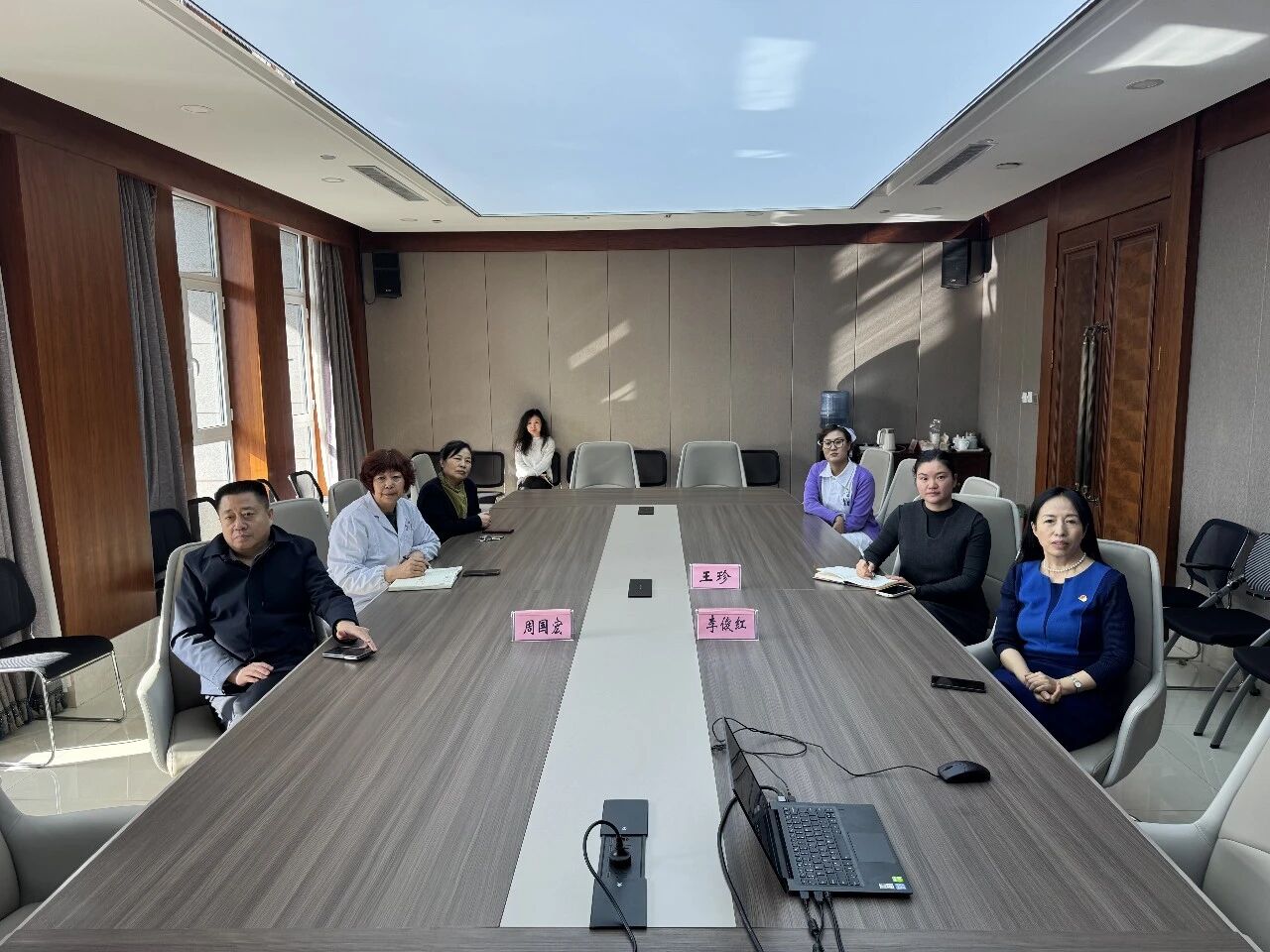 情牵万里,援非大爱。由我院派出的第四批援吉布提“消除白内障致盲项目”医疗队队员远赴吉布提开展医疗援助工作已40余天。为详细了解队员们的工作生活情况,切实传递医院的关怀与支持,1月20日,我院专门召开援外线上视频慰问会,与江琳、董慧、薛亮等8位在吉布提一线执行任务的队员亲切连线、暖心交流。院党委书记李俊红,党委副书记、院长周国宏,副院长王珍及相关人员参会。
