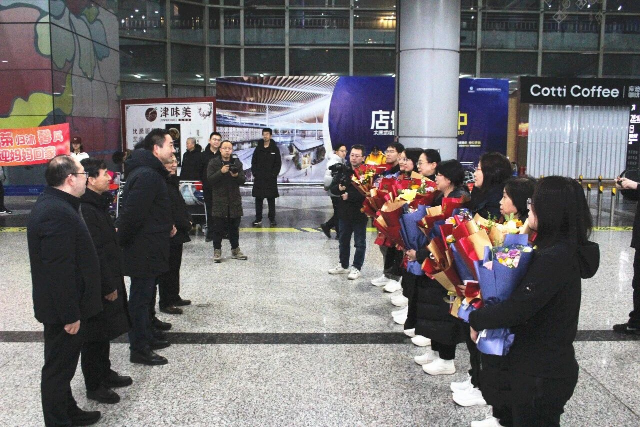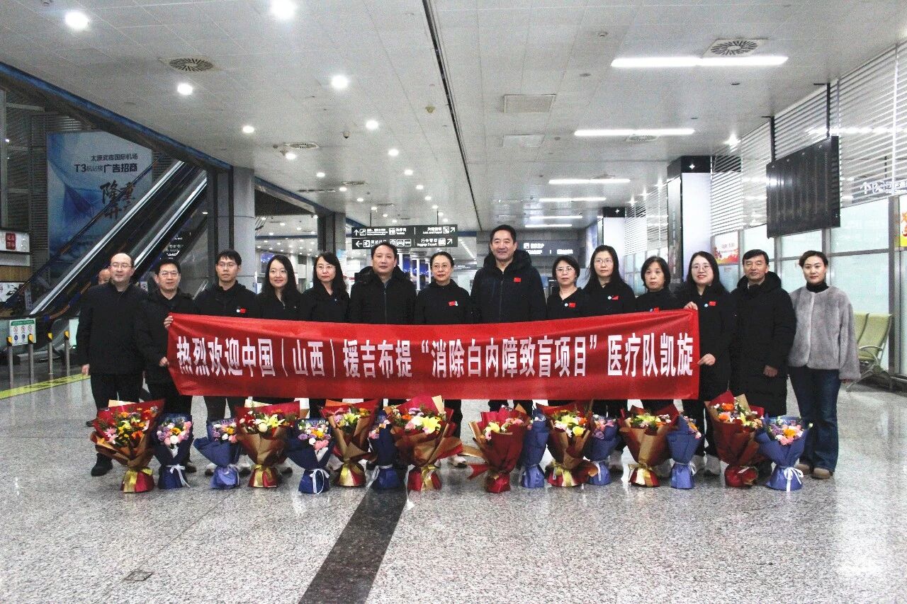 1月31日晚23时40分,山西省眼科医院组建的援吉布提“消除白内障致盲项目”第四批医疗队,在圆满并超额完成援外诊疗任务后载誉归来,顺利抵达太原武宿国际机场。山西省卫健委国际交流合作处处长李晓,山西省眼科医院党委委员、纪委书记李旭光,与新闻媒体记者、队员家属及医院相关工作人员专程到场迎接,以鲜花致意、用拥抱相迎,为归来的医护队员们送上最真挚的“回家”祝福。