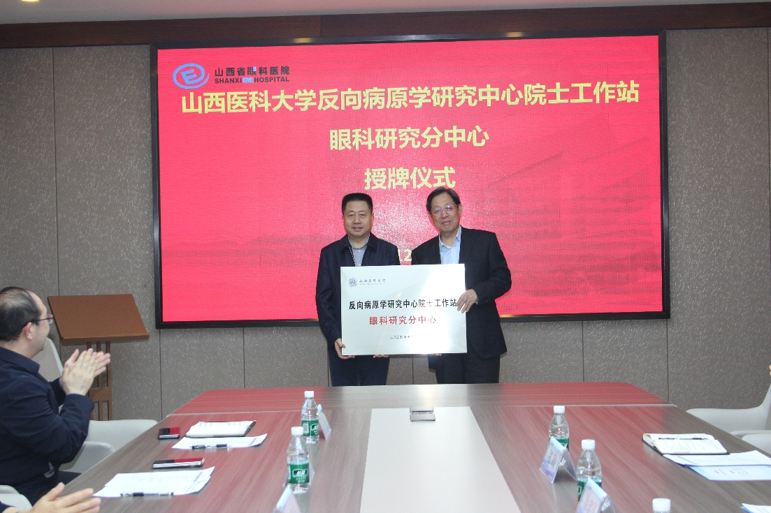 在徐建国院士的大力支持下,我院与山西医科大学深度合作,共建 “反向病原学研究中心院士工作站 - 眼科研究分中心”。这一举措既是对双方前期合作成果的巩固与延伸,更是瞄准眼科微生物学前沿方向、精准服务人民群众眼健康需求的重要战略布局,在全场热烈的掌声中,徐建国院士向周国宏院长授牌。