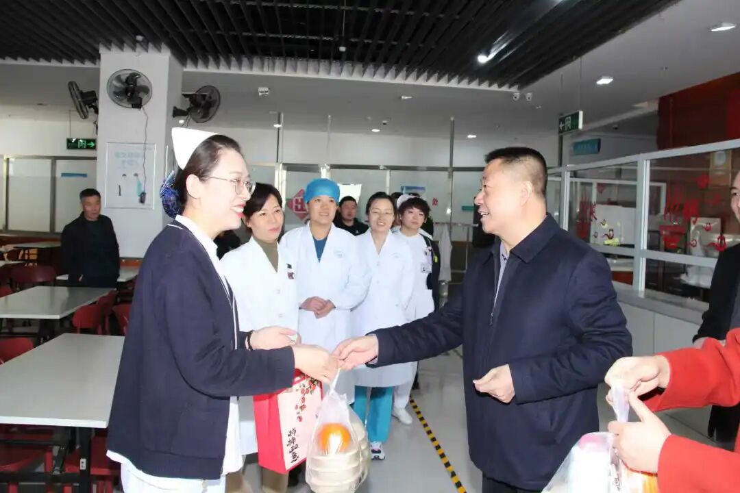 院领导为值班人员送上热气腾腾的饺子和节日慰问品,并与大家亲切交流,详细询问节日期间工作安排、患者救治及后勤保障情况,对大家舍小家、为大家,放弃春节团聚、坚守医疗一线的奉献精神表示衷心感谢和崇高敬意。同时叮嘱全体值班人员,节日期间更要绷紧医疗安全之弦,严守工作规程,以高度的责任心保障医疗服务质量与安全,守护好人民群众的眼健康。