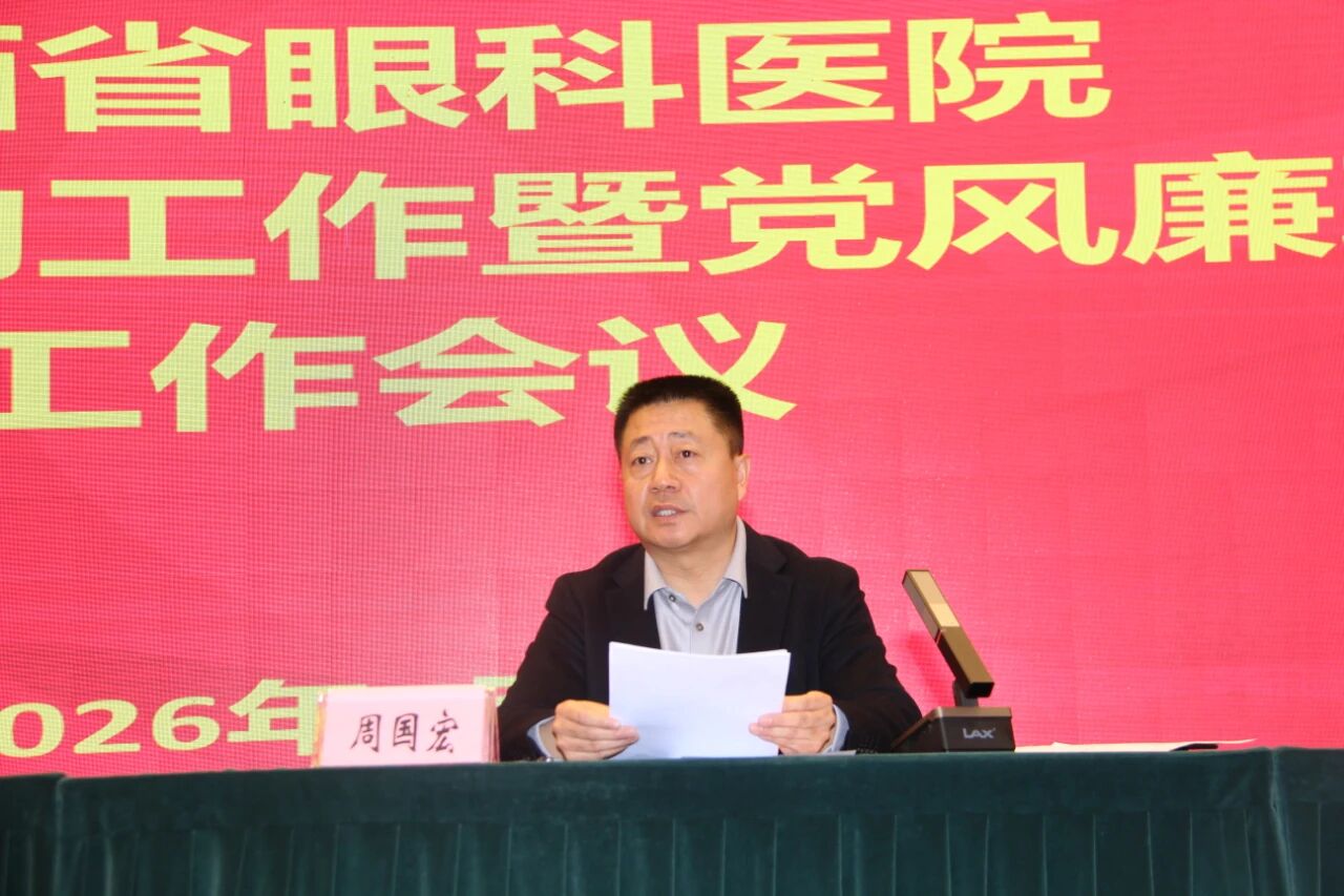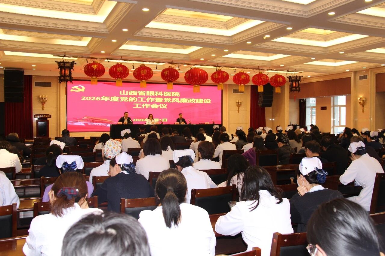 春潮涌动,奋进当时。4月1日,山西省眼科医院隆重召开2026 年度党的工作暨党风廉政建设工作会议。会议全面复盘 2025 年度党建工作成效,精准分析研判当前党风廉政建设形势,并系统部署 2026 年重点任务,为医院在 “十五五” 开局之年实现高质量发展擘画政治蓝图、筑牢纪律根基。院领导班子成员及全体党员干部齐聚一堂,共商党建大计,共筑廉洁防线。党委书记李俊红作重要讲话,党委委员、纪委书记李旭光安排部署党风廉政建设工作。党委副书记、院长周国宏主持会议并安排部署院党委2026年工作重点和任务。