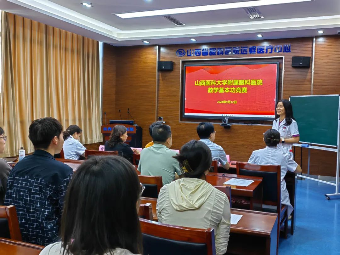 为提高医院的教学质量,加强师资队伍建设,为医学教育注入新的活力,9月12日下午,我院在住院部二层远程会议室成功举办了一场精彩纷呈的教学竞赛——山西医科大学附属眼科医院举办第三届教学基本功竞赛。本次竞赛邀请了山西医科大学教务处郭睿教授、山西医科大学药学院张爱平教授、山西医科大学第二医院武耀红教授、山西省眼科医院师燕芸教授和谢娟教授担任专家评委,山西医科大学21级眼视光医学13名本科生作为学生评委。此次竞赛众多优秀的医护人员参与其中,展现了扎实的专业知识和独特的教学风采。