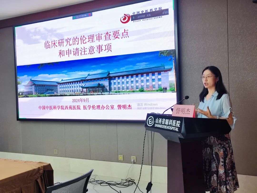 为进一步提升科研人员伦理知识素养,增强伦理委员审查能力,有效防范医学伦理风险,9月20日下午,山西省眼科医院药物临床试验伦理委员会成功举办伦理审查能力提升专题培训会,培训会邀请中国中医科学院西苑医院訾明杰教授作了以《临床研究的伦理审查要点和申请注意事项》为题的专题讲座,副院长、临床试验伦理委员会主任委员周国宏教授及GCP伦理委员会全体成员参加会议。