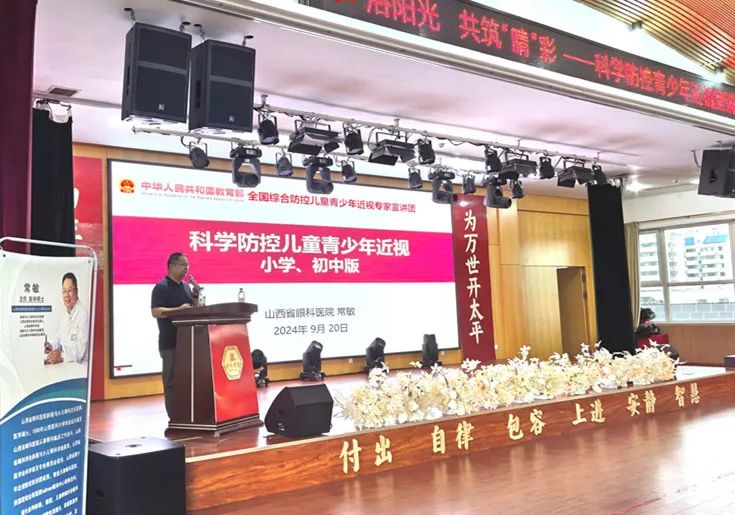 9月15日至25日为2024年“全国科普日”,同时9月也是“全国近视防控宣传教育月”,为深入贯彻习近平总书记关于青少年健康成长的重要指示精神,普及健康知识,弘扬科学精神,营造全社会近视防控宣传教育氛围,山西省眼科医院小儿眼科党支部组织医务人员于9月20日前往小店区晋阳学堂实验学校进行近视防控知识讲座义诊和眼健康科普宣传,为师生们带来一场别开生面的健康科普之旅。