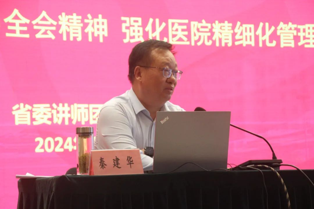 宣讲会上,秦建华以《贯彻二十届三中全会精神 强化医院精细化管理》为题作了专题讲座,他从二十届三中全会的重大意义、重要讲话精神、重大举措以及贯彻落实等多个方面出发,紧密结合统计工作,全面解读了全会精神实质和丰富内涵,剖析了全会精髓,聚焦了全面深化改革“为何改”“改什么”“怎么改”的精神特质。同时,立足医院统计工作实际,深入分析了统计工作对医院管理的重要意义。