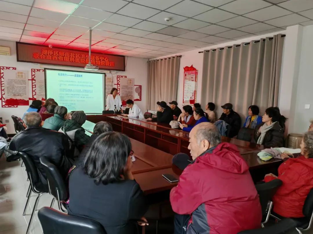 为落实省爱卫办、省卫健委、省疾控局、省计生协会联合颁发的开展“迎新春送健康享温暖”冬季爱国卫生和健康促进活动要求,提高社区居民的健康水平,普及健康知识理念,12月12日,山西省眼科医院医护团队与解南社区卫生服务中心联合走进太原市迎泽区解南社区,联合开展了“迎新春 走基层 送健康”志愿服务活动,为辖区老年人进行现场眼健康义诊、健康咨询、健康讲座等系列服务,旨在将健康知识和健康服务送到群众身边,提升群众健康获得感。