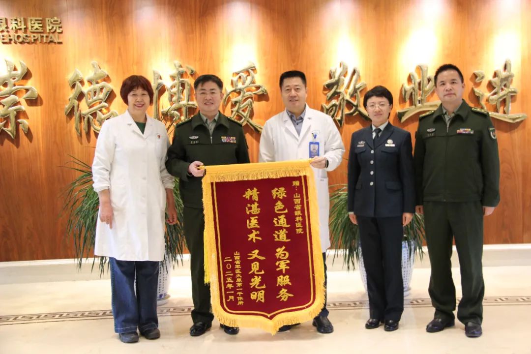积极弘扬新时代拥军优属是我院的优良传统。1月16日上午,山西省军区第一干休所所长王龙,政委宁占波一行专程来到山西省眼科医院,将一面写着“绿色通道为军服务 精湛医术又见光明”的锦旗送到医院,以感谢我院医护人员为军人及家属提供高质量的诊疗和优质的服务。党委委员、院长周国宏代表医院接收锦旗,并进行亲切交谈。