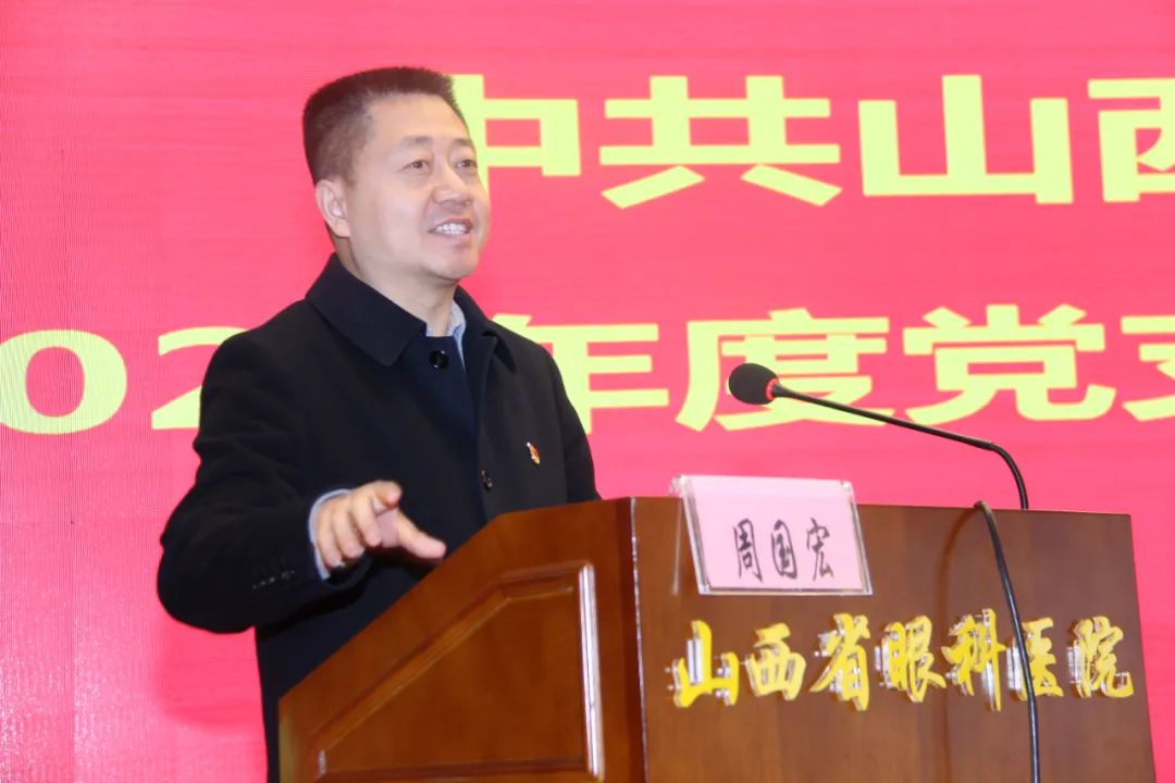 为深入学习贯彻习近平新时代中国特色社会主义思想和党的二十届三中全会精神,总结交流我院支部党建工作经验,进一步推动全面从严治党向支部延伸,落实管党治党政治责任,严肃党内政治生活,促进支部党建全面进步、全面过硬,2月13日下午,山西省眼科医院召开2024年度党支部书记述职评议考核会议。院党委班子成员、各党支部书记、支委参加会议。会议由院党委副书记、院长周国宏主持。