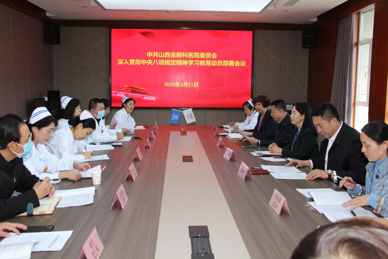 3月21日,山西省眼科医院召开深入贯彻中央八项规定精神学习教育动员部署会议。学习贯彻习近平总书记关于加强党的作风建设的重要论述、关于深入贯彻中央八项规定精神学习教育的重要讲话和重要指示精神,传达学习省委重要会议精神,并对医院开展学习教育工作进行安排部署。党委书记李俊红,党委副书记、院长周国宏,党委委员、纪委书记李旭光,各支部书记及党办、纪检监察室、宣传科等相关科室负责人参加会议。会议由党委副书记、院长周国宏主持。