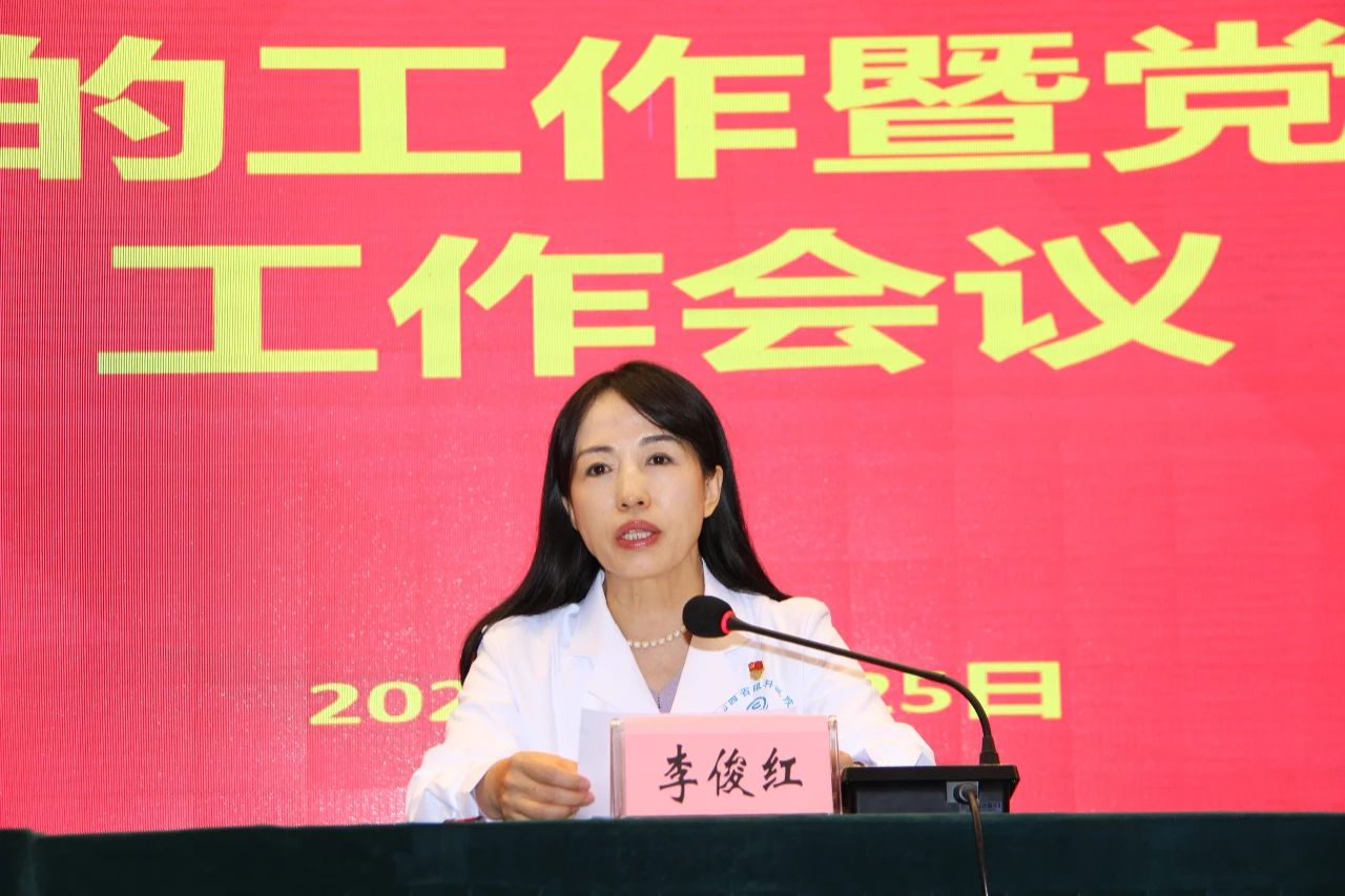 党委书记李俊红在总结讲话指出,过去的一年,院党委全面贯彻落实党中央关于全面从严治党的战略部署和省委、省卫健委党组工作安排,扎实开展党纪学习教育,深入推进全面从严治党,广大党员干部旗帜鲜明讲政治的思想自觉更加坚定,遵规守纪强作风的纪律意识更加牢固,求真务实抓工作的干事氛围更加浓厚,推动医院党的建设和诊疗服务能力取得新的进展成效。李俊红强调,一要要提高政治站位,进一步增强落实全面从严治党的责任感使命感,深入学习贯彻习近平总书记关于党的建设的重要思想、党的自我革命的重要思想,学深悟透《习近平关于健康中国论述摘编》,坚定捍卫“两个确立”,做到“两个维护”。二要坚持守正创新,在以高质量党建促进高质量发展上展现新担当新作为,进一步强化全面从严治党主体责任,是推动医院高质量发展的关键所在。要坚定的把这一政治责任扛在肩上,真抓实干、锐意进取,以实际行动走好新的赶考之路。三要落实从严治党责任,推动党风廉政建设迈上新台阶,推动医院党的建设和党风廉政建设工作迈上新台阶。要强化统筹联动,以扎实开展深入贯彻中央八项规定精神学习教育为契机,把推进全面从严治党与落实全年重点任务部署紧密结合起来,与医院中心工作结合起来,与提升诊疗保健水平、改善患者就医体验结合起来,以高质量党建引领医院事业高质量发展,为全省人民的眼健康事业高质量发展提供坚强保障。 周国宏在主持会议时要求全院党员干部一要强化贯彻,凝聚共识。不断加强党的领导和党的建设,坚定不移推动全面从严治党向支部延伸,确保各项任务和部署要求落地见效;二要扛牢主体责任,强化政治担当,坚决落实党风廉政建设各项任务,认真抓好重点领域整治工作,持续深化清廉医院建设。三要党建引领,融合发展。把党建工作与学习贯彻党的二十大、二十届三中全会精神紧密结合起来,与医院的中心工作紧密结合起来,不断开创党建工作新高度,为医院高质量发展提供坚实的政治保障。