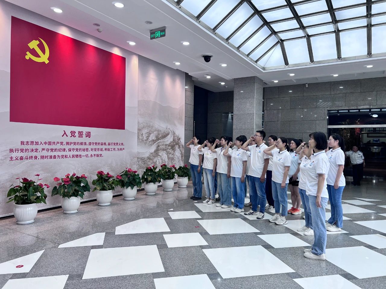 活动伊始,全体党员于彭真纪念馆前列队整齐,面对鲜红的党旗,在斜视与小儿眼科党支部书记姚霞的带领下,庄重地重温入党誓词。