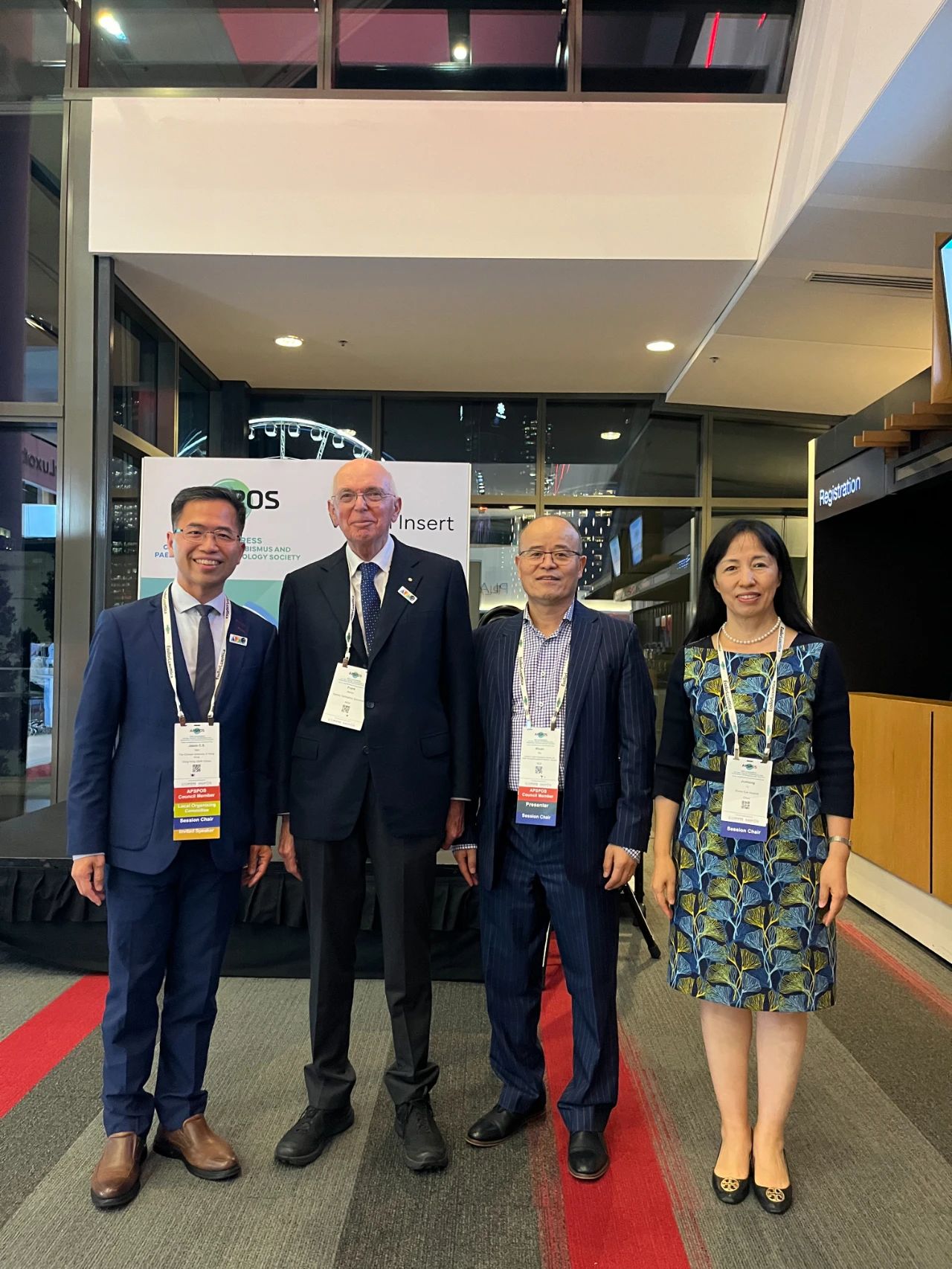李俊红教授与亚太斜视与小儿眼科学会主席Frank Martin教授、本次大会主席Shuan Dai教授和学术部负责人Jason Yam教授和在一起。