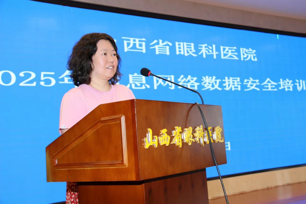 为进一步加强医院网络与数据安全防护能力,提高全院职工对网络与数据安全的认识和重视,增强网络与数据安全防范意识,保护患者及医院的信息安全,7 月 18 日,山西省眼科医院举办 2025 年网络安全和数据安全专题培训会。本次培训特邀杭州美创科技股份有限公司-数据安全咨询专家、山西省国资委技术支撑专家、山西省警察学院实战教官李嘉鑫老师和山西赛盾网络安全测评技术有限公司网络安全等级保护中级测评师,高级网络与信息安全工程师刘慧老师主讲。培训会由信息技术科主任刘燕主持。