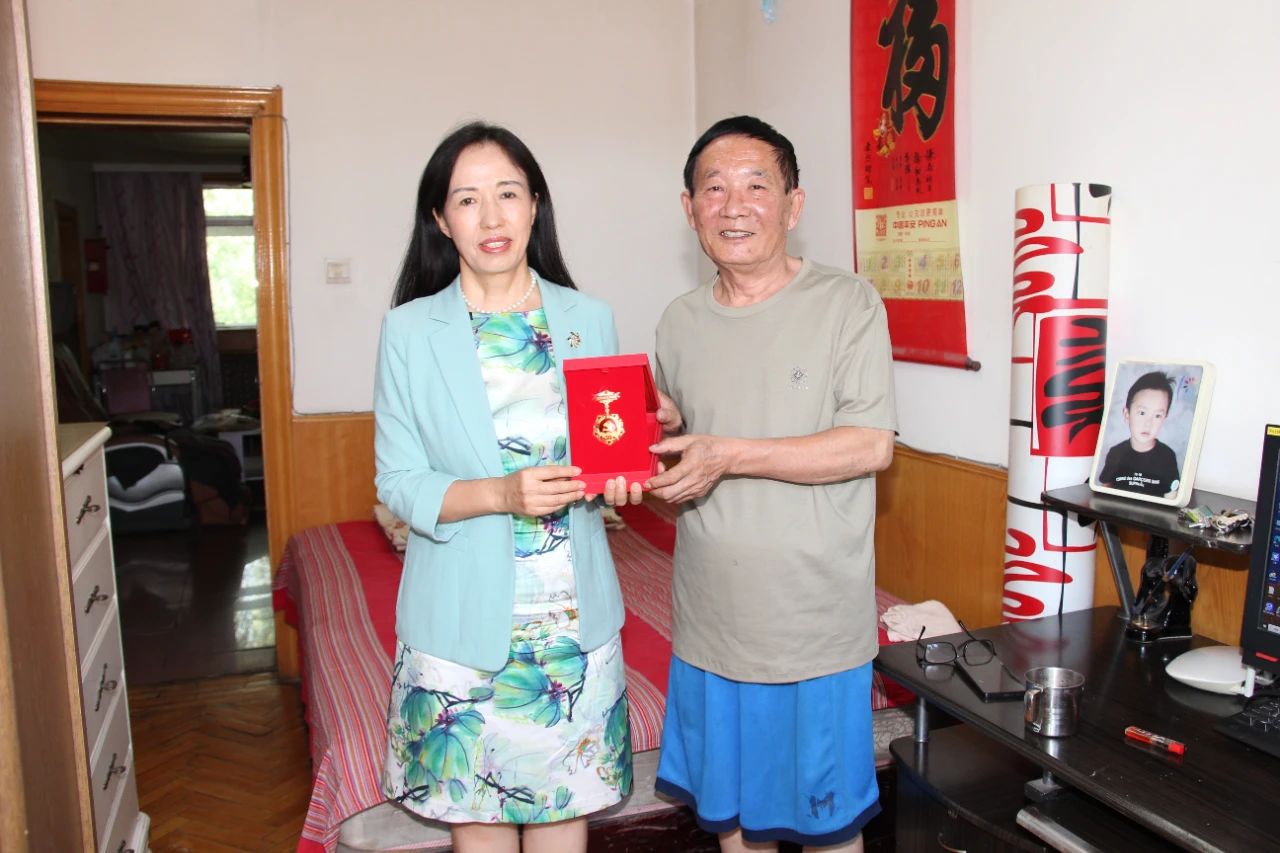 一面党徽,闪耀着半个世纪的忠诚信仰;一枚纪念章,承载着无上荣光。值此“八一”建军节来临前夕,我院党委精心组织,将节日慰问与致敬老党员紧密结合,特别聚焦于为党的事业和医院发展奉献毕生心血、党龄满50年的老党员同志。慰问组一行来到老党员张玉林同志家中。党委书记李俊红把“光荣在党50年”纪念章佩戴在老党员张玉林胸前,紧紧握住他的手,关切地询问他的身体状况和生活起居情况,并代表医院党委向他致以崇高的敬意和节日的祝福。交谈中,李俊红深情地说:“您是我们党的宝贵财富,是医院建设发展的亲历者和奠基人。您50年如一日对党忠诚、为医院无私奉献的精神,为我们树立了光辉榜样。在‘八一’这个光荣的节日里,我们更要向您这样的老党员致敬!” 张玉林同志激动地回忆起自己和老伴儿在医院工作的难忘岁月,感慨万千:“感谢党,感谢组织一直没有忘记我们!看到医院今天的发展成就,我感到无比欣慰和自豪。作为一名老党员、老职工,我将永远听党话、跟党走,祝愿医院发展蒸蒸日上!” 此次“八一”前夕的走访慰问活动,不仅为老党员们送去了节日的温暖和组织的关怀,更是一次生动的党性教育和精神传承。它深刻体现了我院党委对老党员、老同志的高度重视和深厚感情,也彰显了医院尊崇军人、关爱功臣的优良传统。老党员们坚定的理想信念、深厚的家国情怀和无私的奉献精神,深深感染了在场的每一位同志。 医院党委表示,将一如既往地关心关爱老党员、老同志的生活和健康,切实落实好各项政治待遇和生活待遇。同时,号召全院广大党员干部职工,特别是青年一代,要以这些老党员为榜样,学习他们“一颗红心永向党”的政治品格、“俯首甘为孺子牛”的奉献精神和“越是艰险越向前”的奋斗意志,将红色基因融入血脉,立足本职岗位,锐意进取,担当作为,为推动医院高质量发展、守护人民生命健康、服务强国强军事业贡献新的更大力量! 岁月流金,信仰永恒。在“八一”军旗的辉映下,我院党委对老党员的深情慰问,如同一次跨越时空的精神对话,将忠诚、奉献与担当的红色火炬代代相传,激励着全体省眼医人在新时代的征程上奋勇前进。