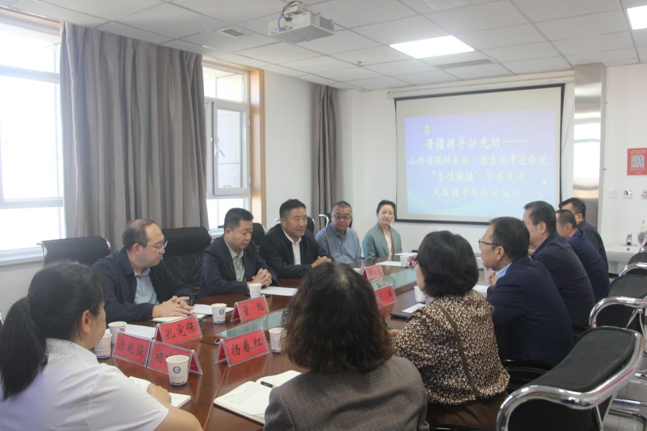 9月16日,山西省眼科医院与昌吉自治州中医医院柔性援疆工作座谈会在昌吉州中医医院召开,山西省眼科医院党委副书记、院长周国宏,党委委员、纪委书记李旭光与昌吉州中医医院党委书记吴斌,党委副书记、院长刘洋,党委委员、副院长李政,党委委员、纪委书记郝卫明及我院援疆专家汤兆强及相关人员参加座谈会,会议由昌吉自治州中医医院党委副书记、院长刘洋主持。