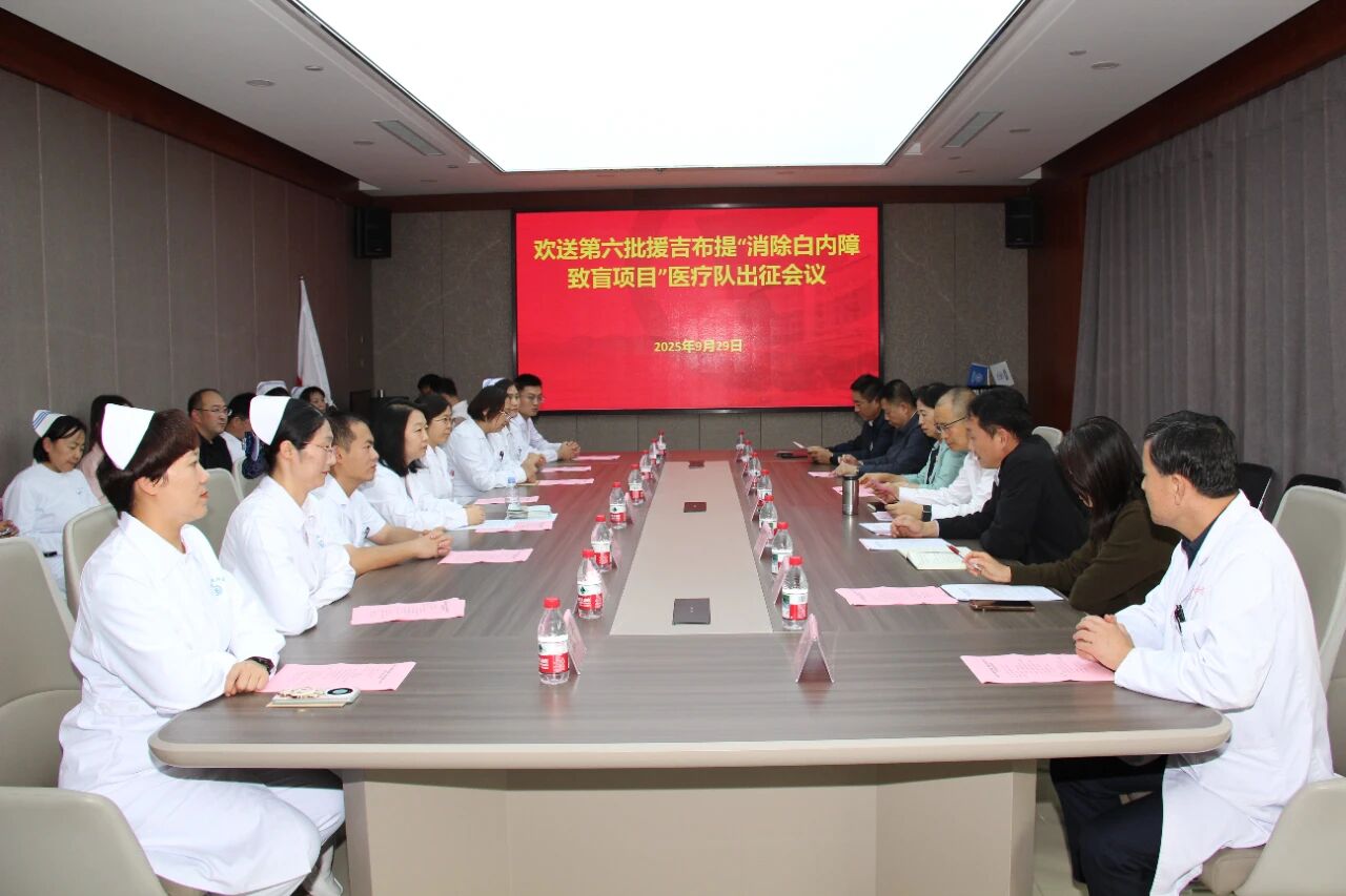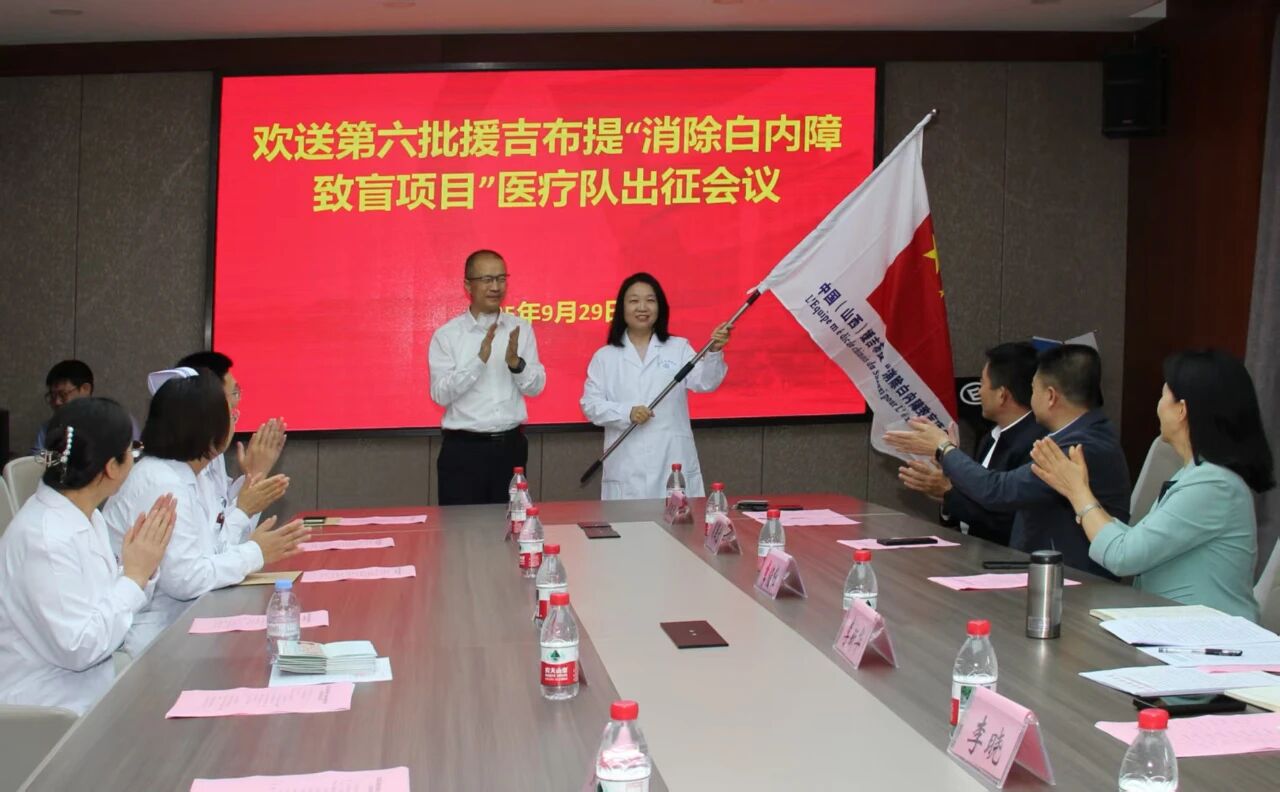 9月29日下午,第六批援吉布提“消除白内障致盲项目”医疗队欢送会在山西省眼科医院举行,省卫生健康委副主任李新华出席会议,为医疗队授旗并做重要讲话。省卫生健康委相关处室负责人,山西省眼科医院党委书记李俊红,党委副书记、院长周国宏,党委委员、纪委书记李旭光以及相关科室负责人、援吉医疗队成员参加了会议。欢送会由省卫生健康委国合处处长李晓主持。