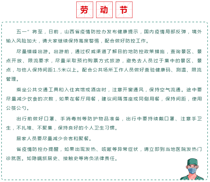 山西发布健康提示:“五一”假期出行,做好个人防护!