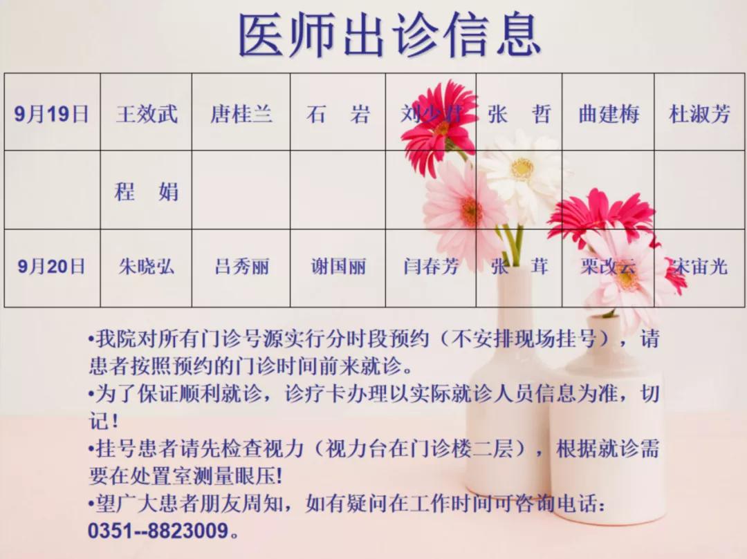 山西省眼科医院9月19日-20日双休日出诊医师信息