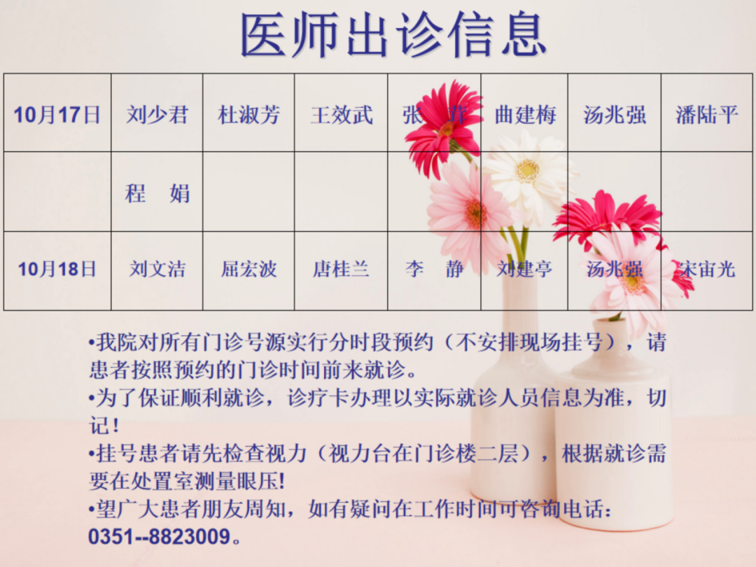 山西省眼科医院10月17日-18日双休日出诊医师信息