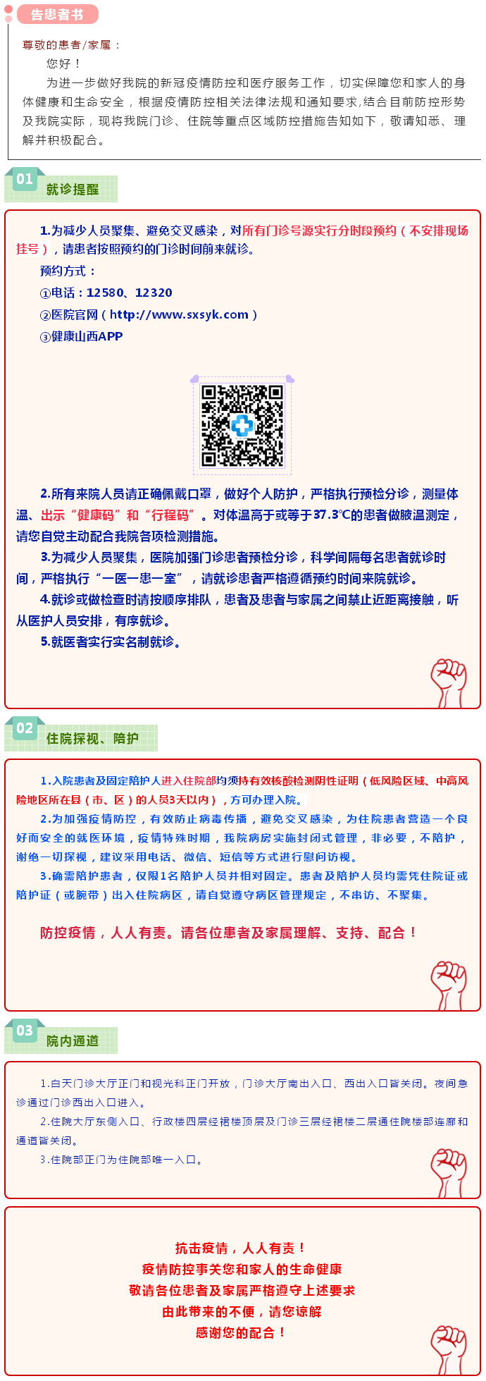 山西省眼科医院疫情防控期间就诊须知:所有进入住院部人员须持3天内核检阴性证明