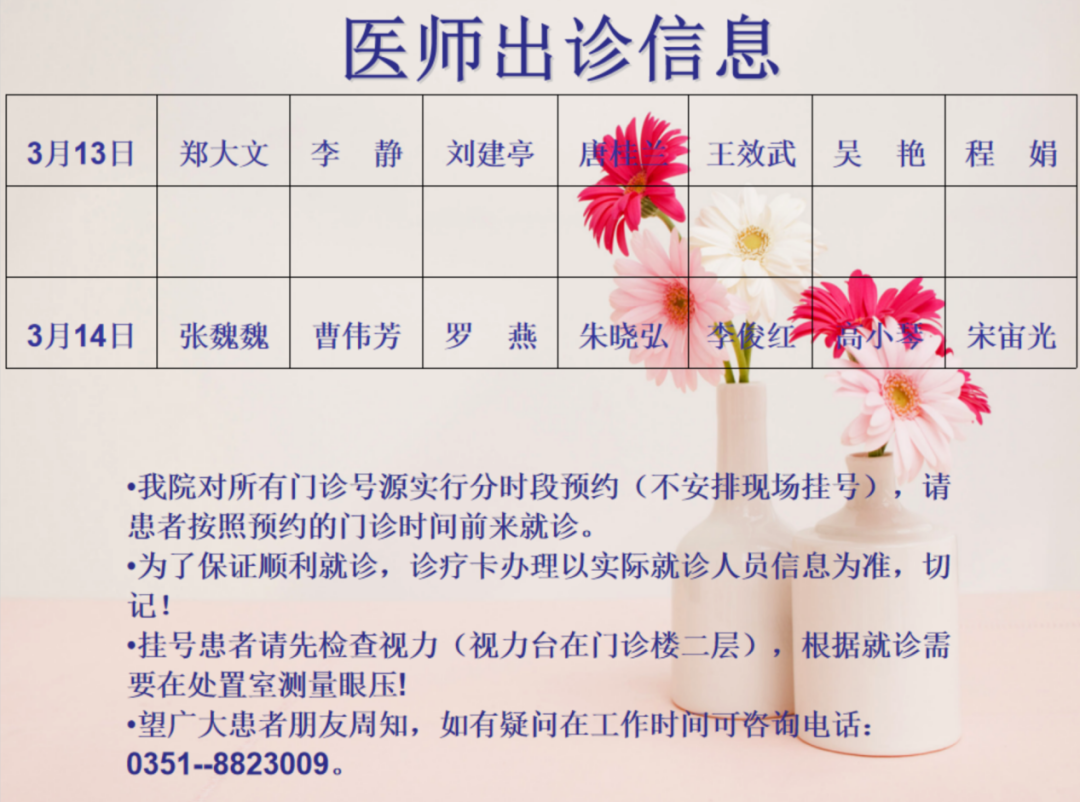 山西省眼科医院2021年3月13日-14日双休日出诊医师信息