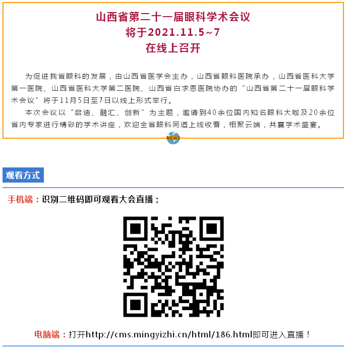 会议预告| 山西省第二十一届眼科学术会议线上会议即将开幕