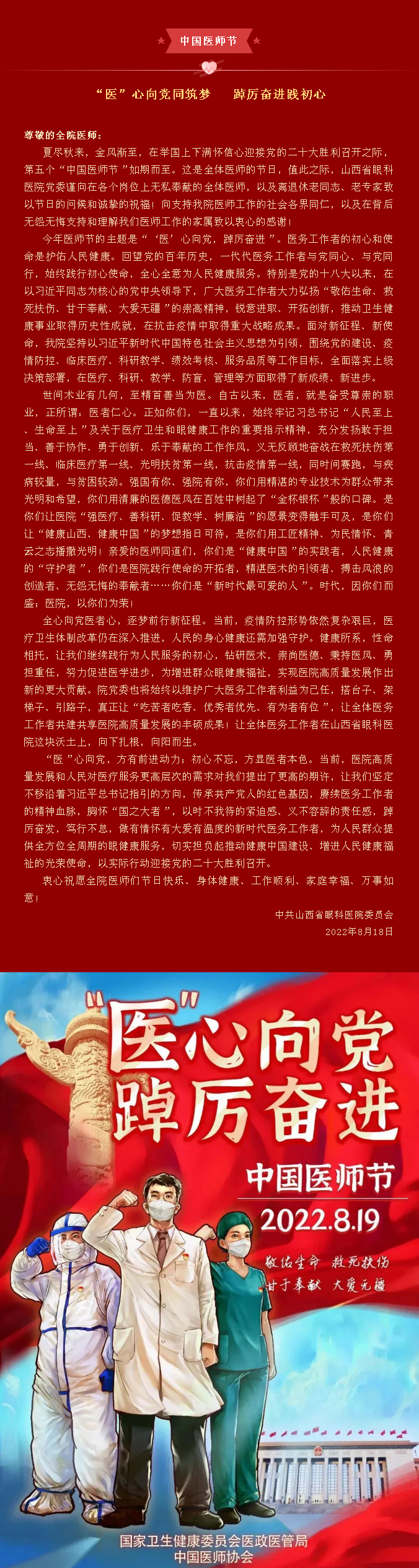 【致敬医师节】山西省眼科医院院党委致全院医师的慰问信