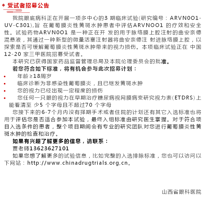 招募葡萄膜炎性黄斑水肿患者的临床试验