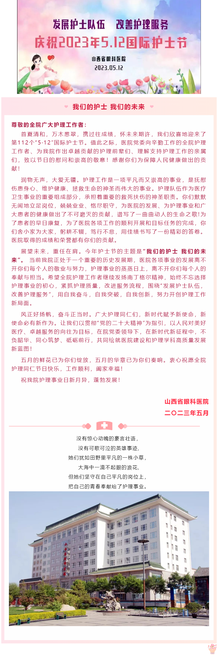 【5.12国际护士节】山西省眼科医院党委致全院护理工作者的慰问信