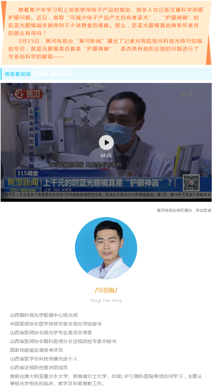 山西省眼科医院视光科冯恬枫走进“黄河新闻”:防蓝光眼镜真是“护眼神器”?
