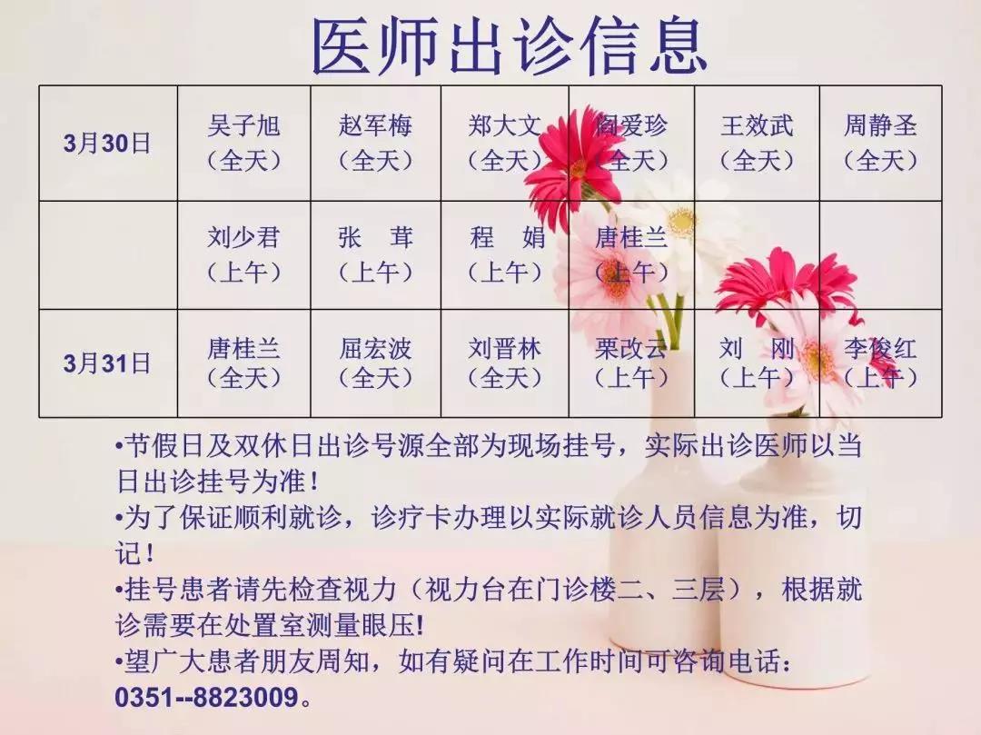 山西省眼科医院清明节小长假(4月5日-7日)出诊医师信息