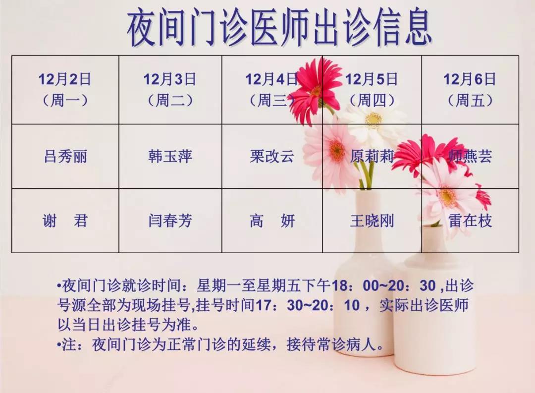 山西省眼科医院夜间门诊(12月2日~12月6日)医师出诊信息