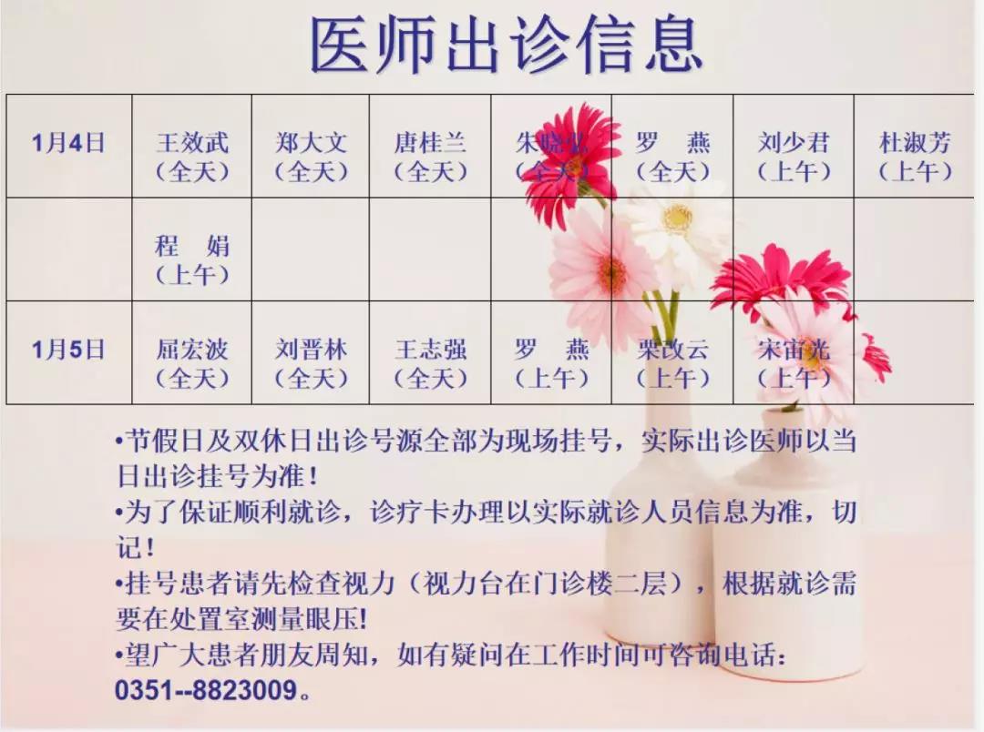 山西省眼科医院1月4日~5日双休日出诊医师信息