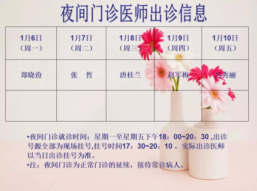 山西省眼科医院夜间门诊(1月6日~10日)医师出诊信息