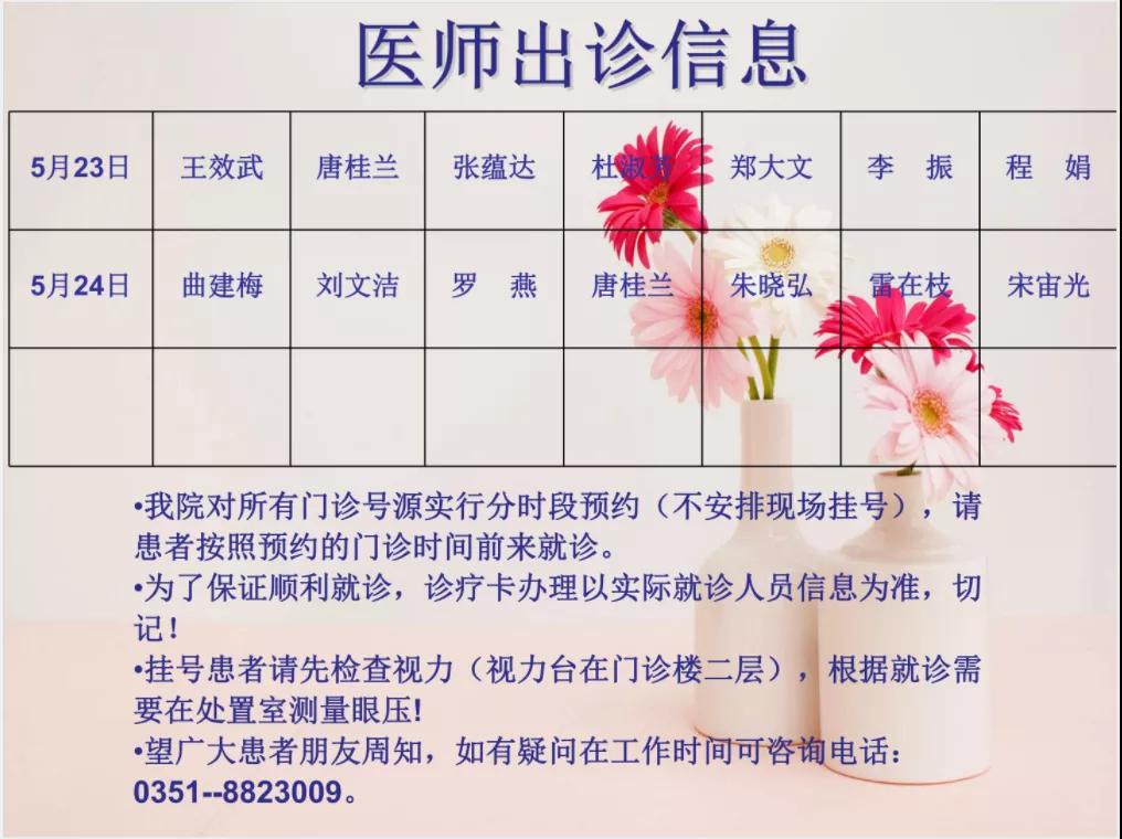 山西省眼科医院5月23日-24日双休日出诊医师信息