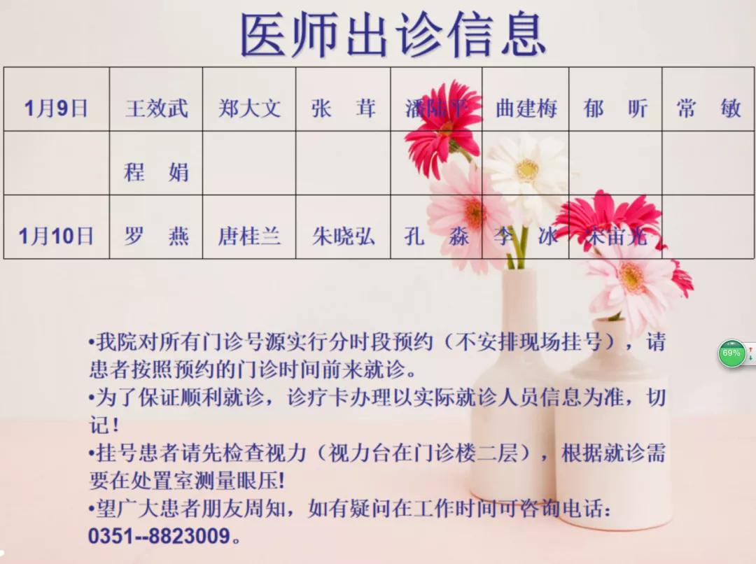 山西省眼科医院2021年1月9日-10日双休日出诊医师信息