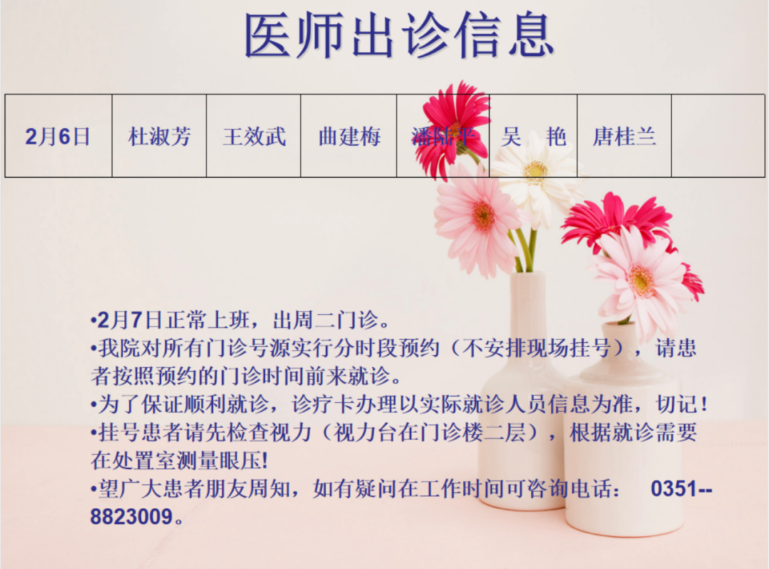 山西省眼科医院2021年2月6日双休日出诊医师信息