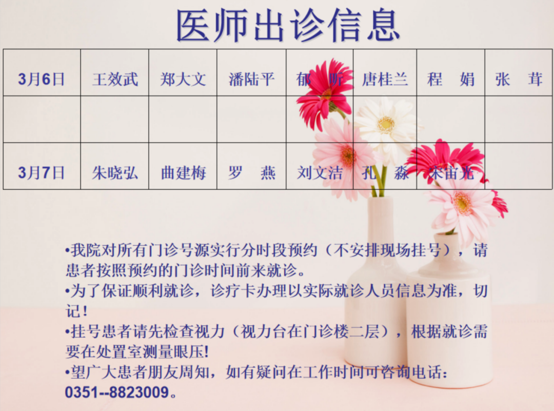 山西省眼科医院2021年3月6日-7日双休日出诊医师信息