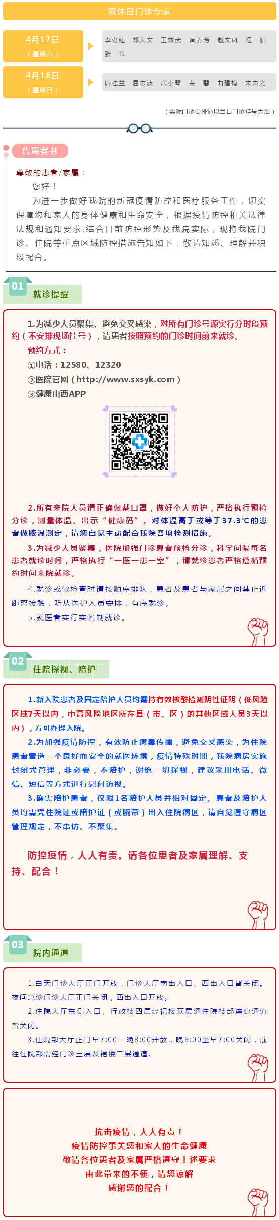 山西省眼科医院4月17日-4月18日双休日出诊医师信息