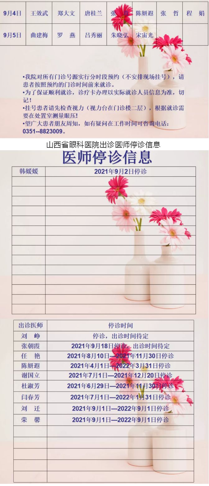 山西省眼科医院9月4日-5日双休日出诊医师信息
