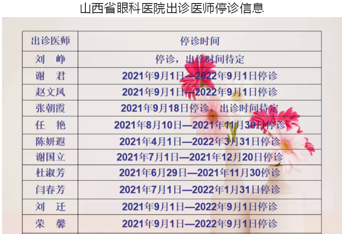 山西省眼科医院2021“中秋节”期间医师出诊信息
