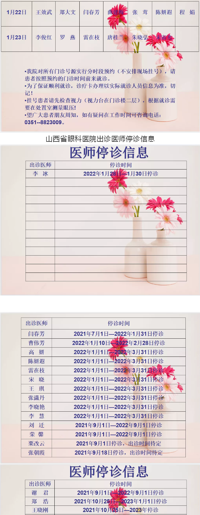 山西省眼科医院1月22日-23日双休日出诊医师信息