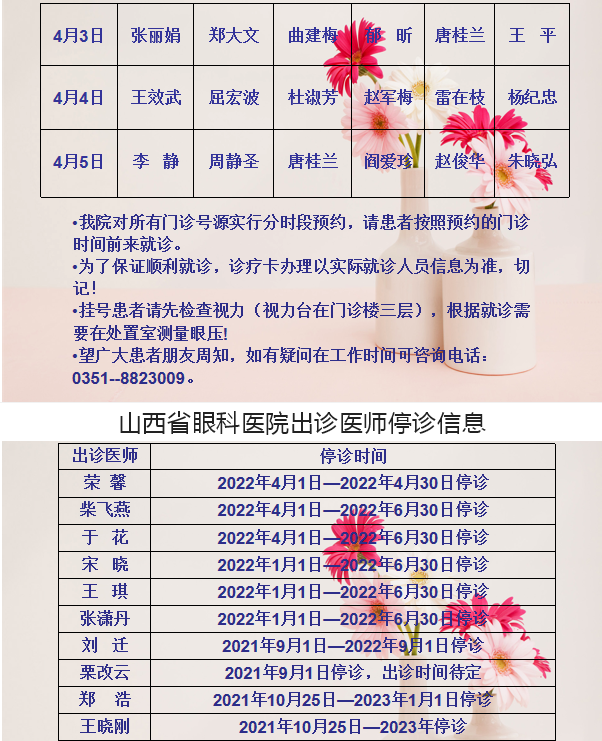 山西省眼科医院3月26日-27日双休日出诊医师信息