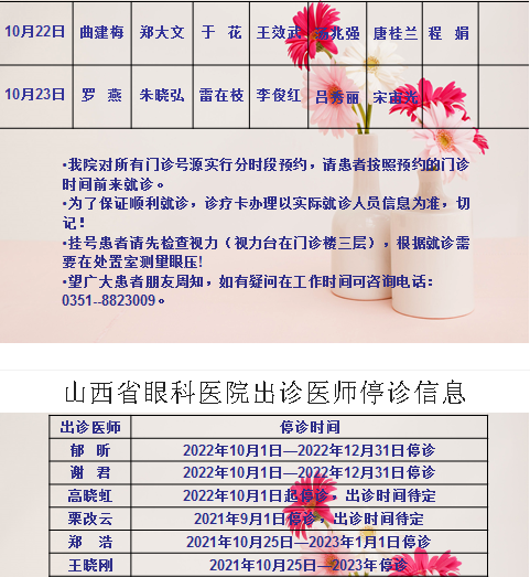 山西省眼科医院10月22日-10月23日双休日出诊医师信息