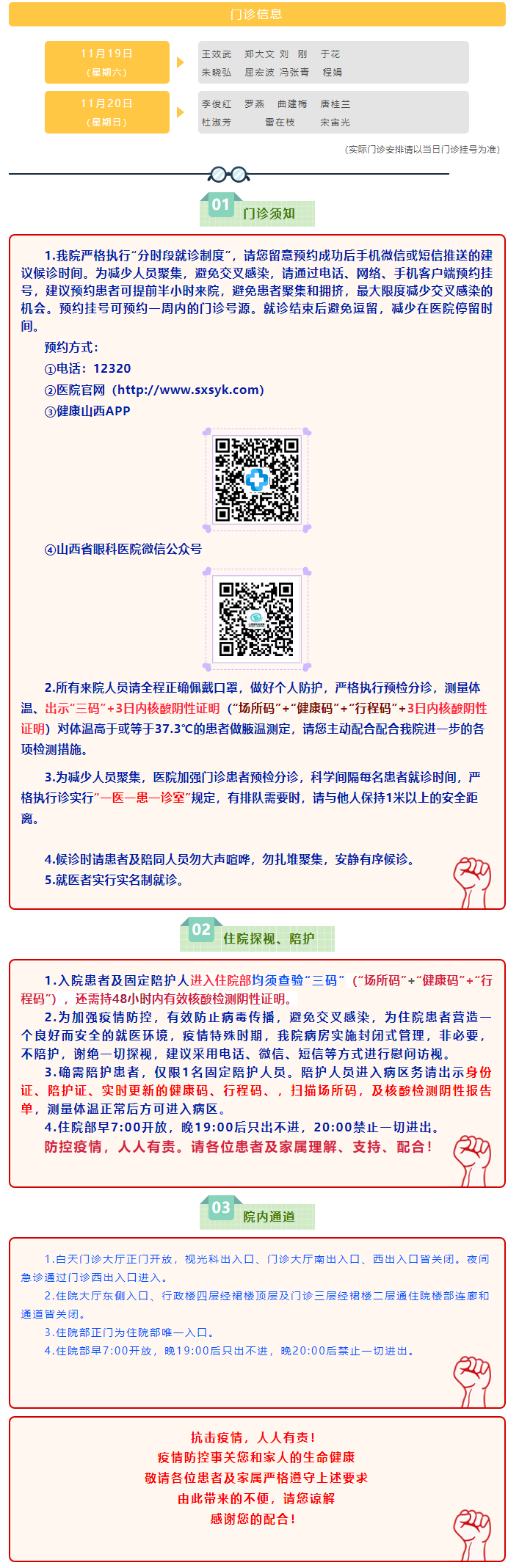 山西省眼科医院11月19日-11月20日双休日出诊医师信息