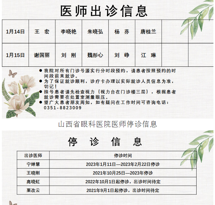山西省眼科医院2023年春节期间门诊工作安排